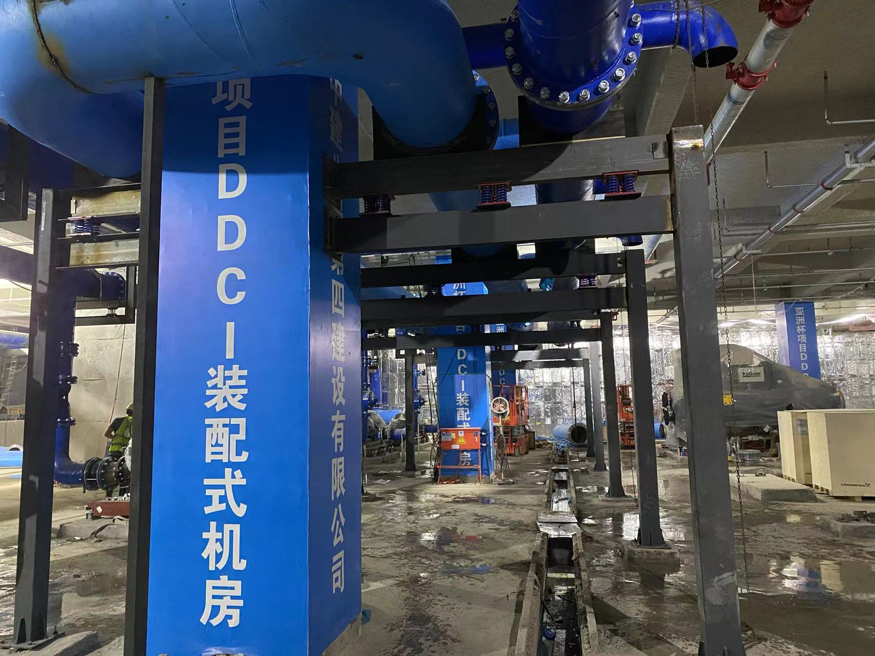 山东格瑞德集团有限公司为足球场中央空调机房提供预制安装。