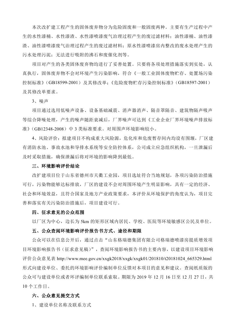 格瑞德喷漆房提质增效项目 环境影响报告书 (征求意见稿)信息公示
