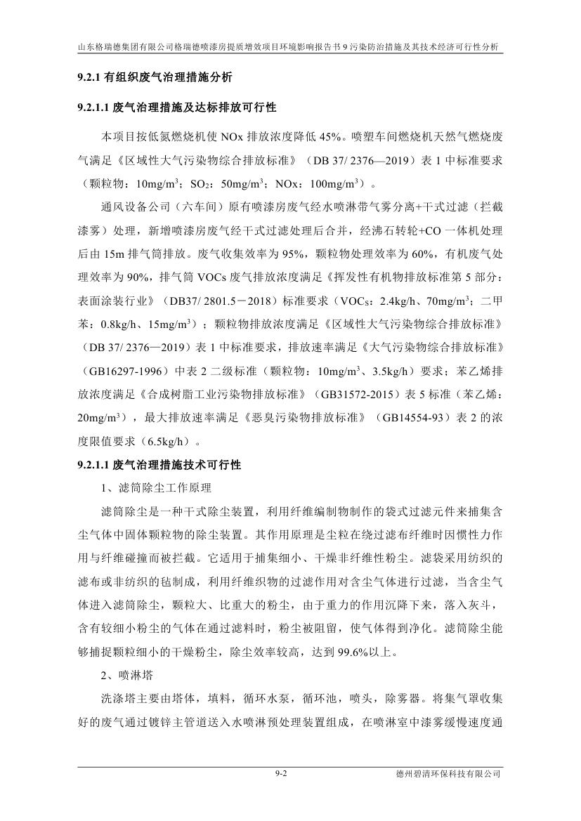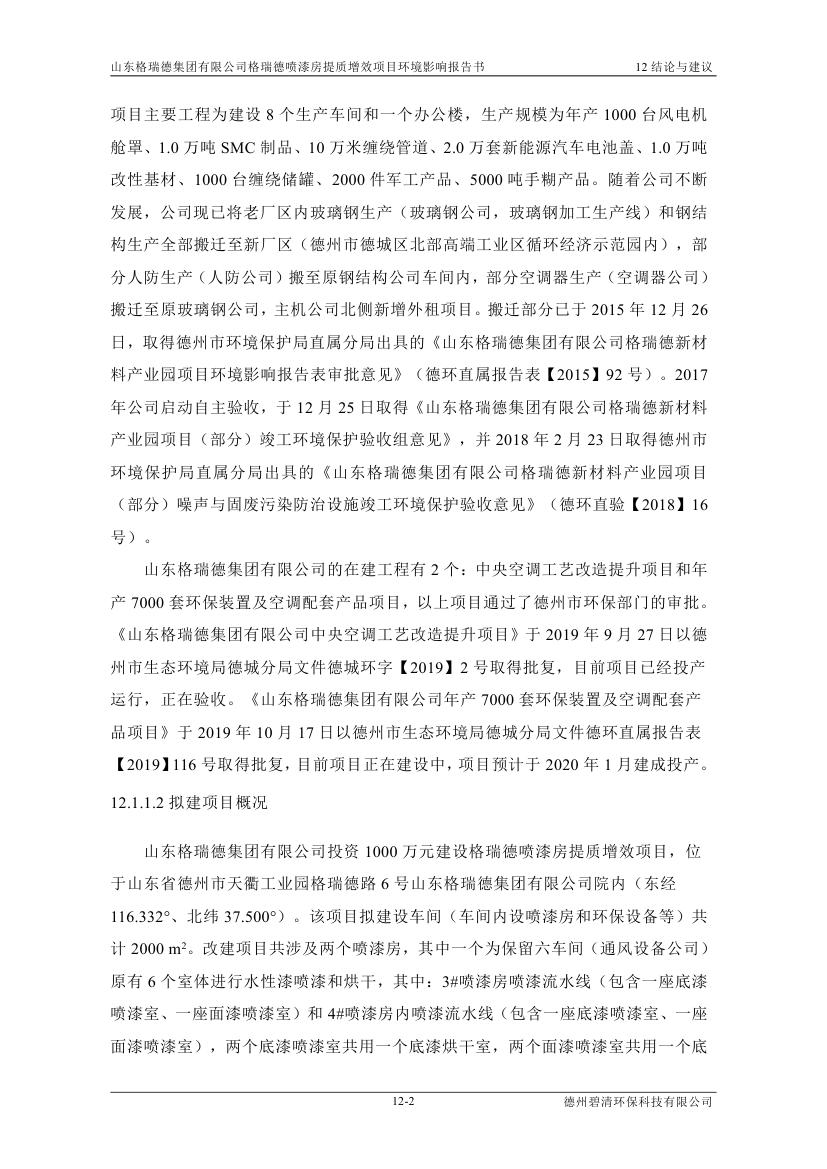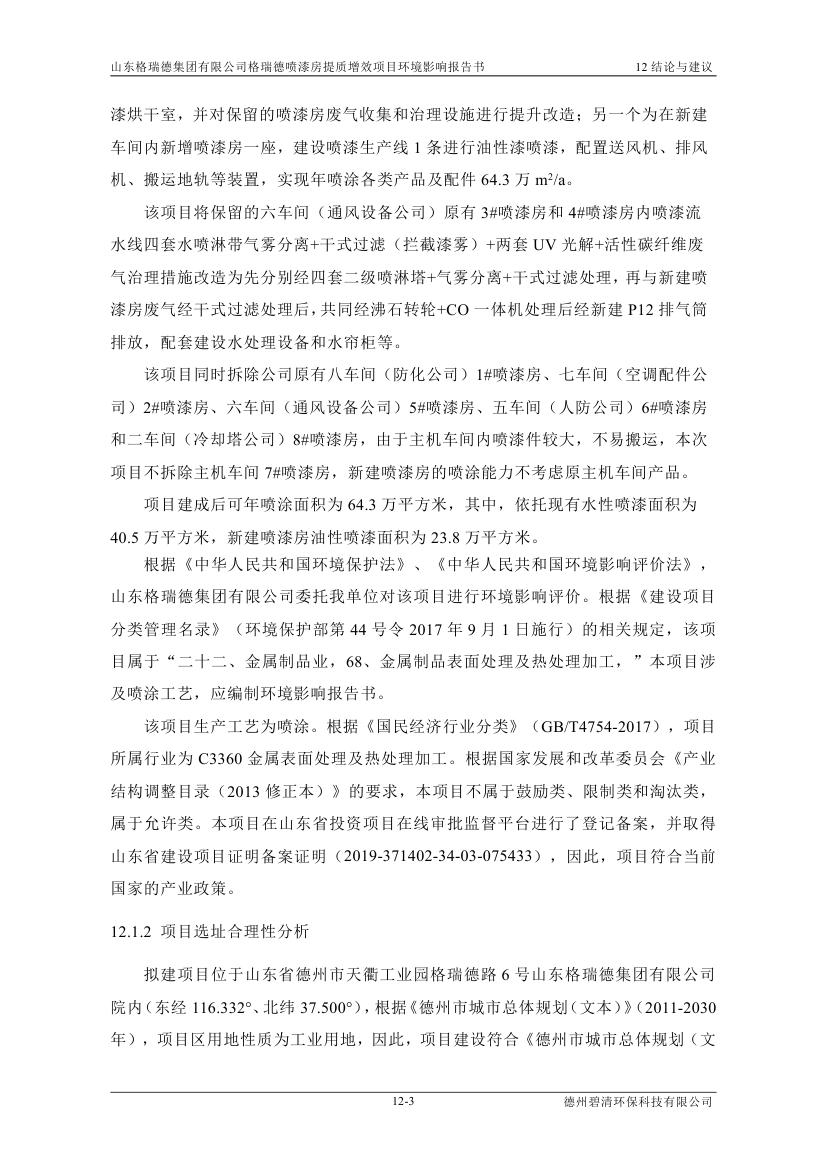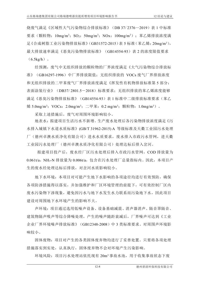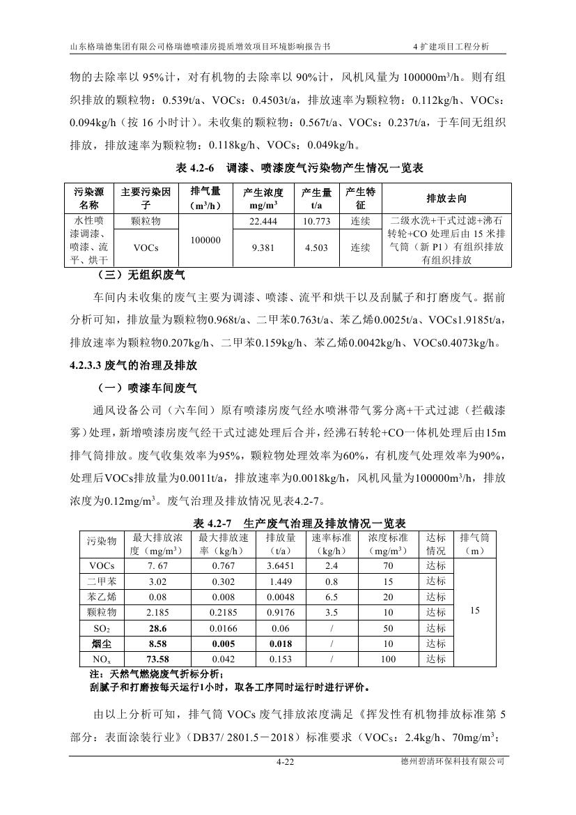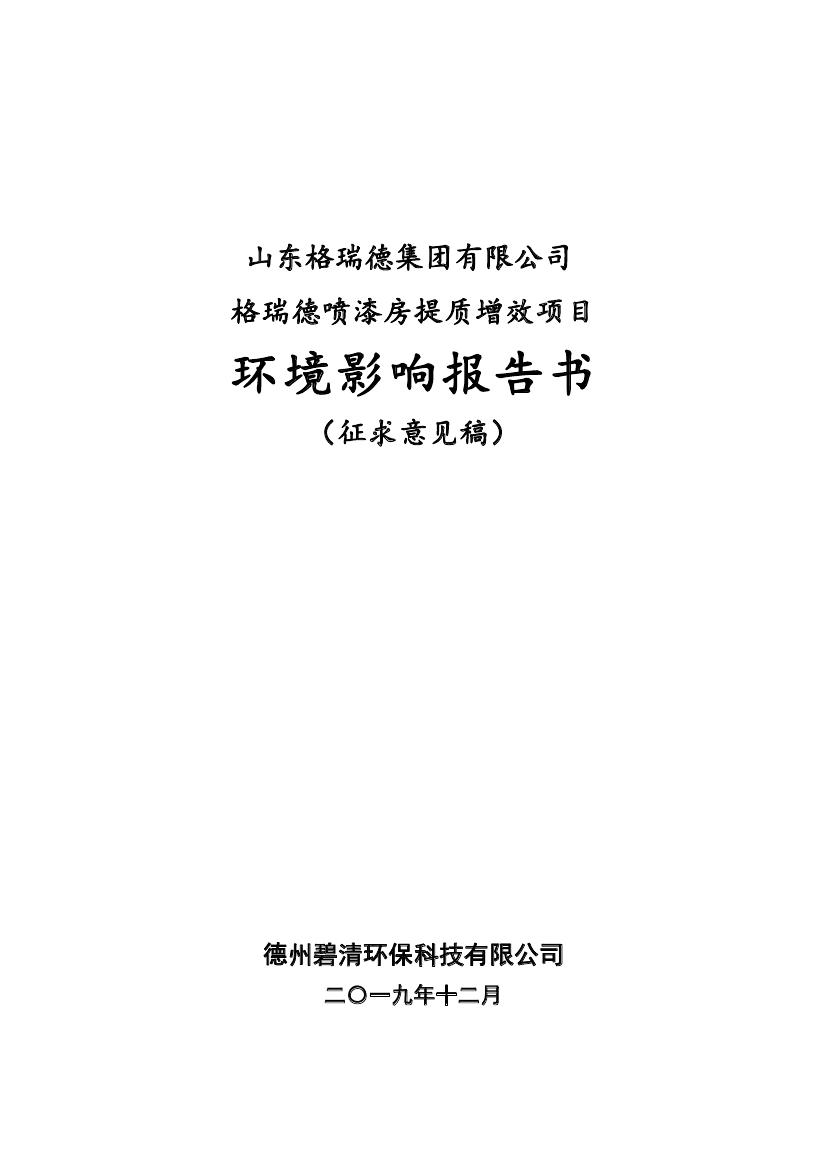 格瑞德喷漆房提质增效项目 山东格瑞德集团有限公司 格瑞德喷漆房提质增效项目 环境影响报告书
