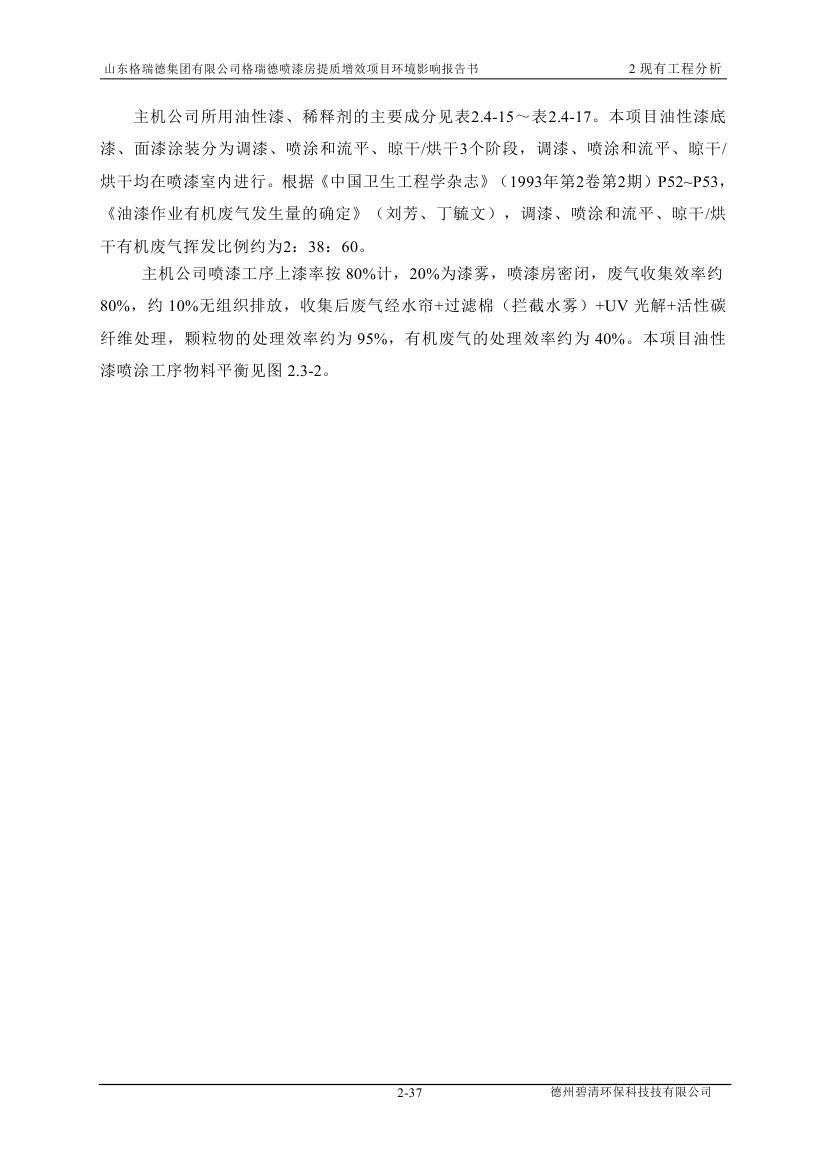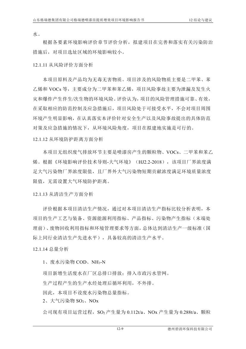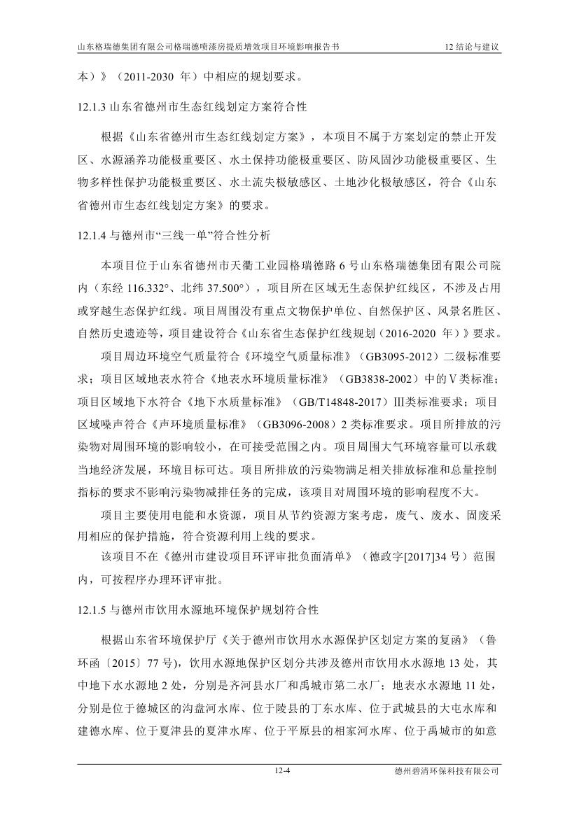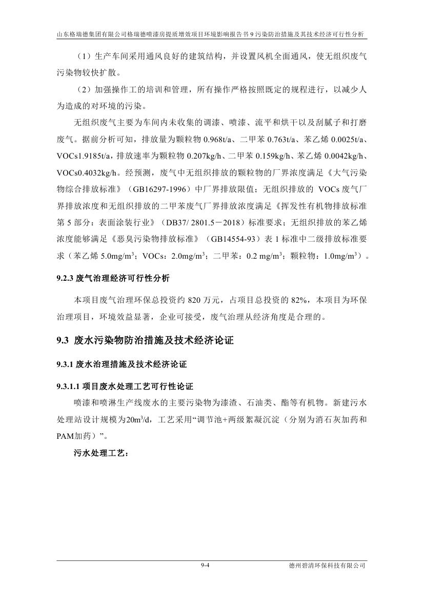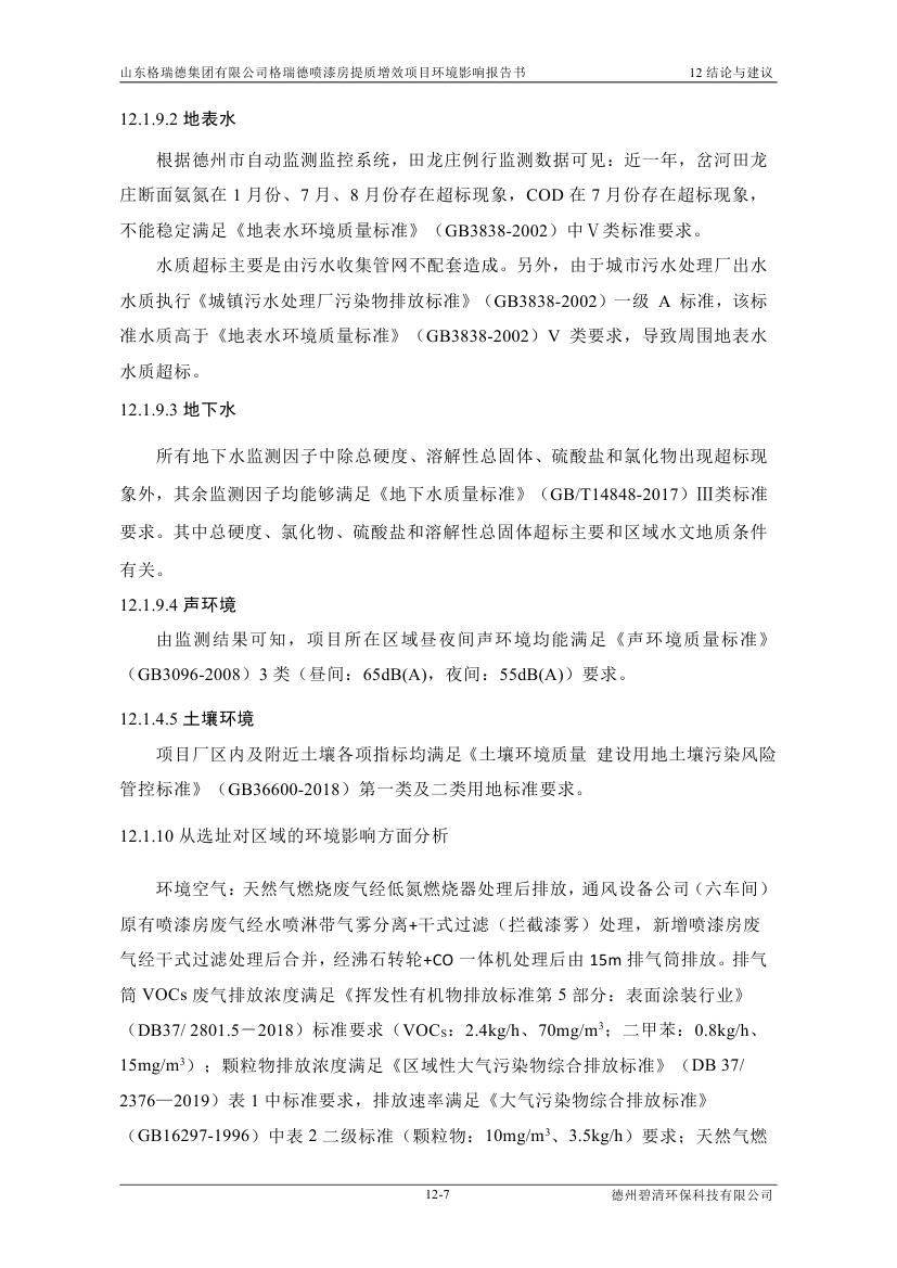 格瑞德喷漆房提质增效项目 山东格瑞德集团有限公司 格瑞德喷漆房提质增效项目 环境影响报告书