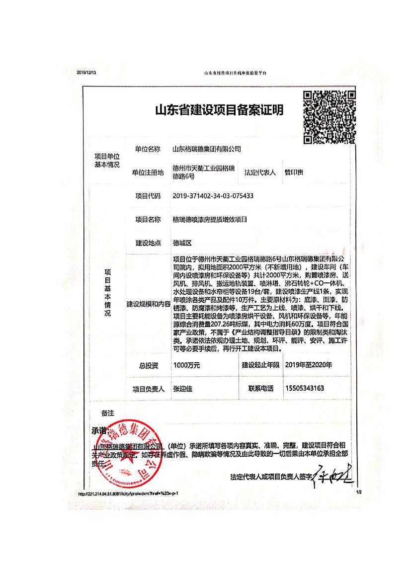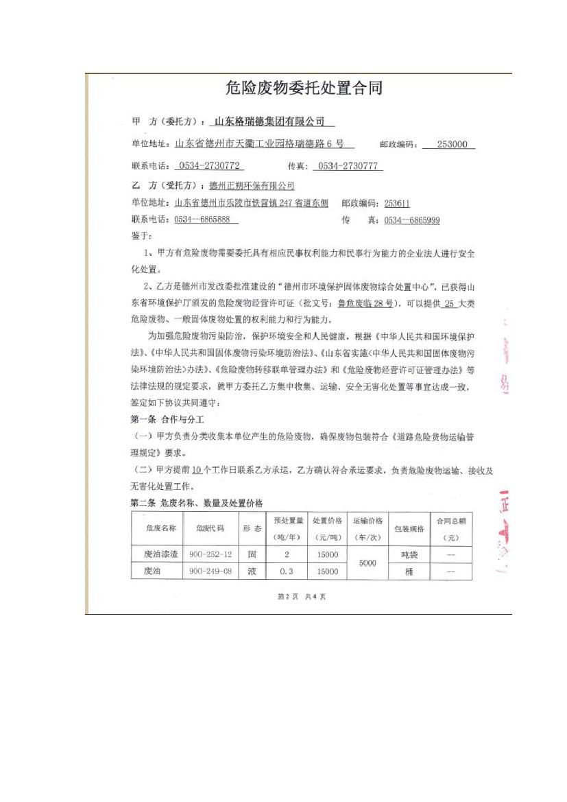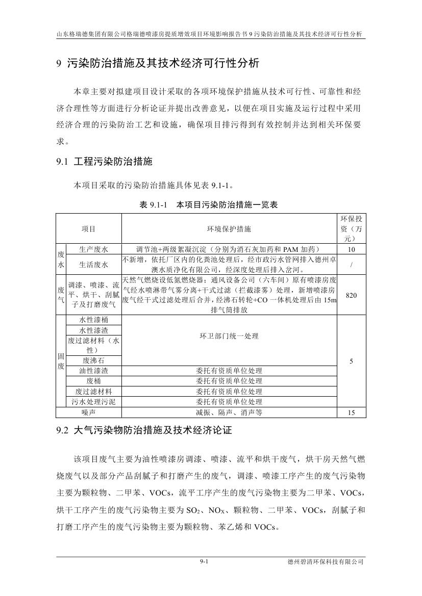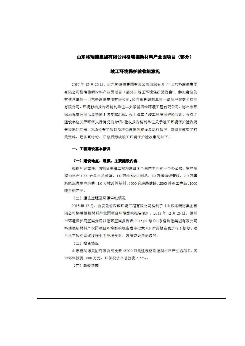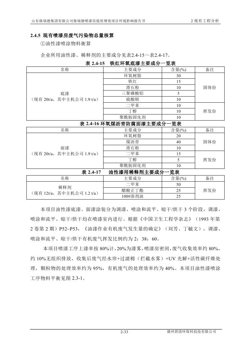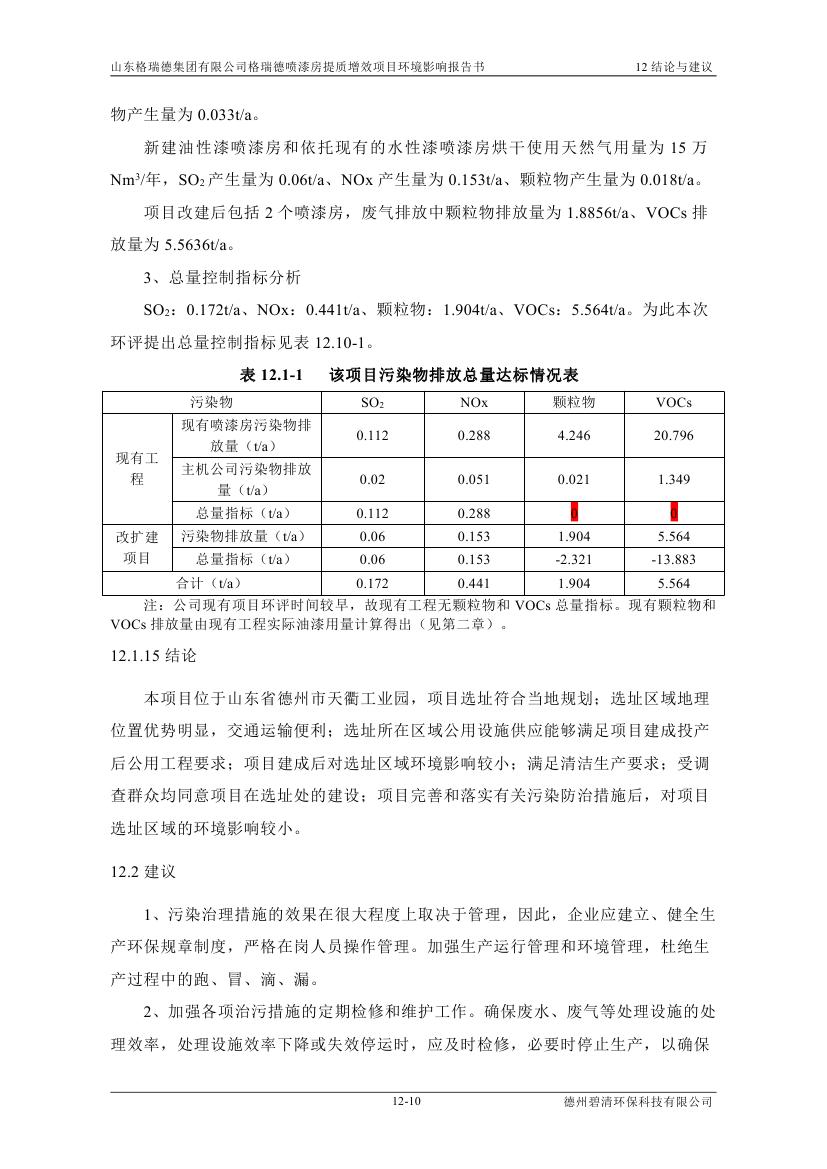 格瑞德喷漆房提质增效项目 山东格瑞德集团有限公司 格瑞德喷漆房提质增效项目 环境影响报告书