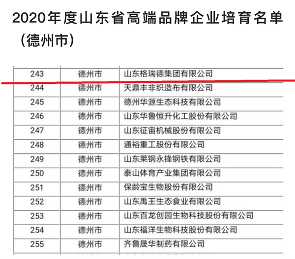 格瑞德集团荣获“2020年度山东省制造业高端品牌培育企业”