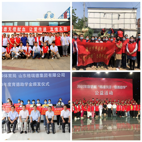 向善而为,逐光而行!近年来,山东格瑞德集团有限公司秉承“以德为基,以人为本,顾客至上”的企业核心价值观,积极履行社会使命,勇担社会责任,从济困、扶老、救孤、救灾、助学、服务等多个层面切入,先后成立义工慈善志愿服务团,设立“育德助学金”等专项救助基金,帮扶社会弱势群体,并组织参与无偿献血、“爱心助农”、“精准扶贫 慈善助学”等各项公益活动,多措并举,在公益方面持续发力,赢得了良好的社会口碑。格瑞德人以种种善举凝聚成人间大爱,力争为社会创造更多价值,帮助更多需要帮助的人。