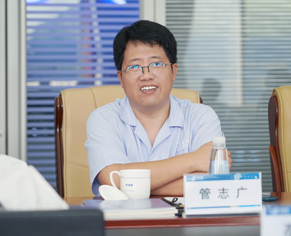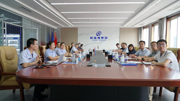 座谈交流中,执行总裁管志广针对格瑞德发展情况、企业管理模式、集团四大板块主营产品、科技创新力量及综合实力进行介绍;研究院综合管理中心主任王瑞汇报集团知识产权工作情况。