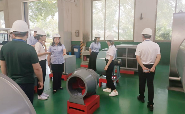 中建八局二公司采购及安装团队主要考察风机、风阀产品。此次考察团参观了格瑞德展厅及生产车间,在此过程中,通风工程一公司总经理孙红静详细介绍了格瑞德集团基本情况、业务领域、产品和服务等,考察团一行对集团的发展规模和生产现代化程度给予高度评价。
