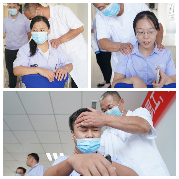 中医大夫们为前来就诊的职工测量血压,通过“望、闻、问、切”的方式问诊、细心检查。认真聆听既往病史、细致解答职工问题,给出合理的诊疗建议并叮嘱后续的注意事项。