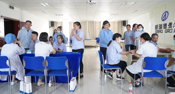 检查现场,职工们遵循检查要求,认真登记、井然有序的排队等候。专家们深受格瑞德职工们的热情感染,快速做好准备工作,为职工们义诊。