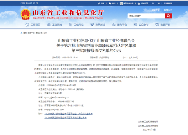 近日,山东省工信厅公示了第六批省制造业单项冠军拟认定名单和第三批复核拟通过名单,集团定长缠绕玻璃纤维增强塑料夹砂管产品上榜山东省制造业单项冠军产品拟认定名单。
