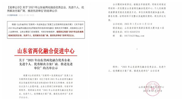 二、集团荣获2021年山东省两化融合优秀企业