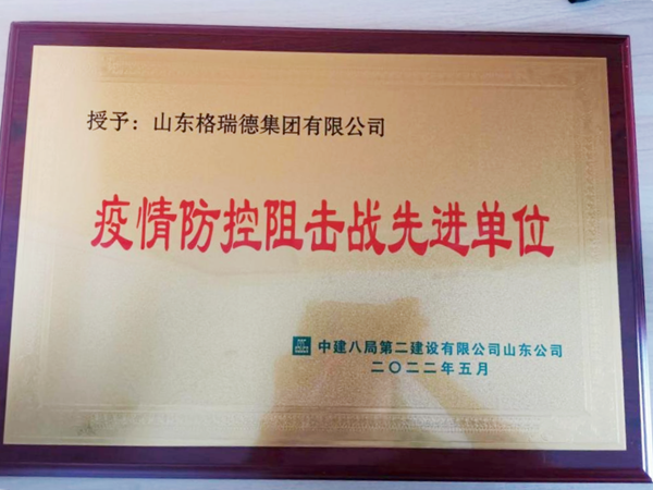 4月,格瑞德集团获得中建八局第二建设公司山东公司项目“疫情防控阻击战先进单位”称号,此荣誉标志着客户对集团品牌、产品质量、服务等方面的高度认可,充分的证明了合作伙伴对格瑞德集团的信任与肯定。
