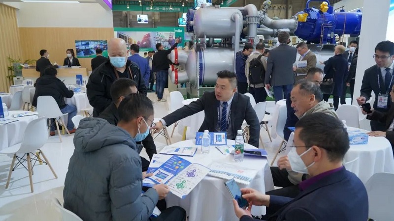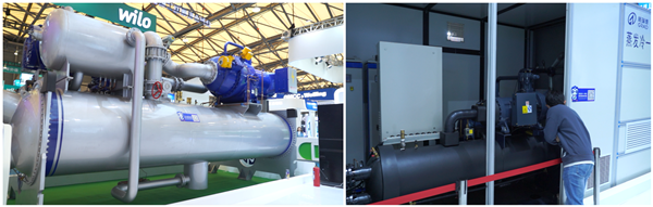 此次参展的10kV复叠式离心高温热泵机组集四级压缩技术、变频技术、高效降膜技术、新环保冷媒R1234ze(E)、高温应用技术于一体,具有高效、节能、环保、稳定等特点。
