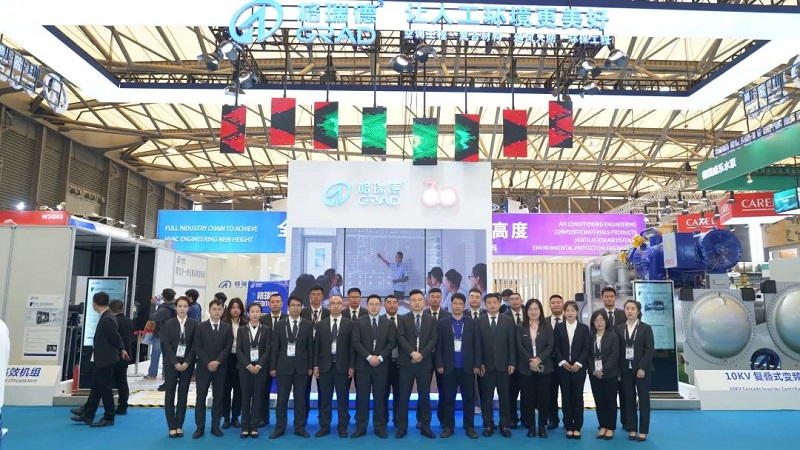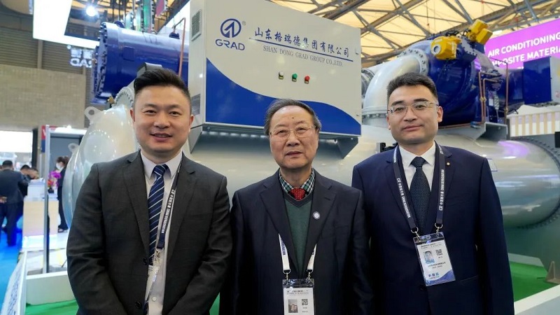 4月7日,第三十四届国际制冷、空调、供暖、通风及食品冷冻加工展览会(中国制冷展)在上海开幕。山东格瑞德集团有限公司携10kV复叠式离心高温热泵机组、蒸发冷一体化移动高效机组亮相会场,吸引了众多行业专家和参会客户的关注。集团执行总裁管志广、集团公司总经理王志军、人工环境产业设计研究院院长马利忠、集团销售中心总监杨中兴、集团运营中心总监高向阳、国际贸易工程公司总经理扈淑君、南方大区总经理曹大军出席展会。