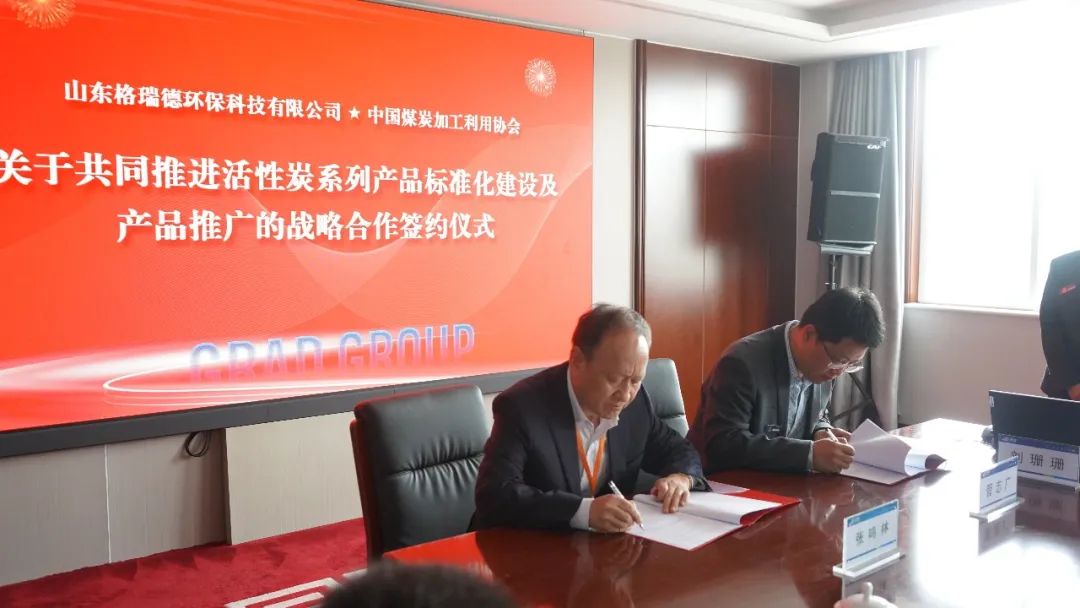 当日,山东格瑞德环保科技有限公司与中国煤炭加工利用协会举行战略合作签约仪式,双方就活性炭系列产品标准制定、高端活性炭材料开发、绿岛VOCs综合治理模式的服务及市场推广等方面达成战略合作。