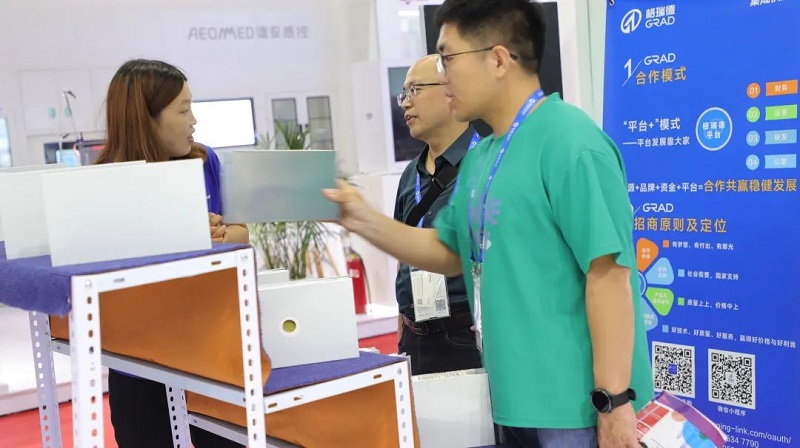 集团洁净样板间、净化组合式空调机组及直膨式净化空气处理机组获得现场观众一致好评。格瑞德净化展示样板间由净化彩钢复合夹芯板和净化密闭门窗组成,现场安装方便快捷,广泛适用于医院、制药、食品、电子等领域。净化彩钢复合夹芯板是由格瑞德集团自主研发、设计、生产的一种加强型的复合夹芯板,可广泛用于高科技电子、医药、化工、食品等行业的净化房围护、吊顶,以及工业厂房、仓库、冷库、烤炉、空调器壁板等洁净领域。