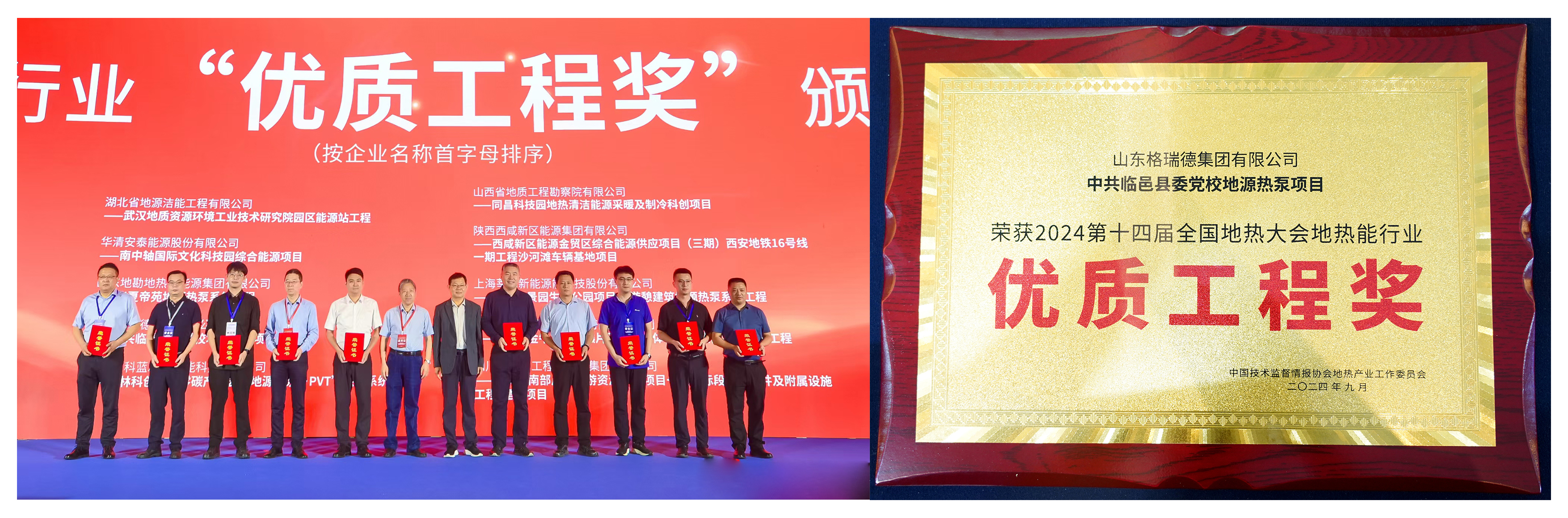 值得一提的是,集团在本次大会上凭借“高温智慧节能能源一体机”获得地热能行业金质产品奖,“中共临邑县委党校地源热泵项目”获得地热能行业优质工程奖。两个奖项的获得,标志着集团不仅在地热产品制造方面成就卓越,在系统工程承揽方面也具备超强实力,再次彰显格瑞德集团在地热行业的重要地位。