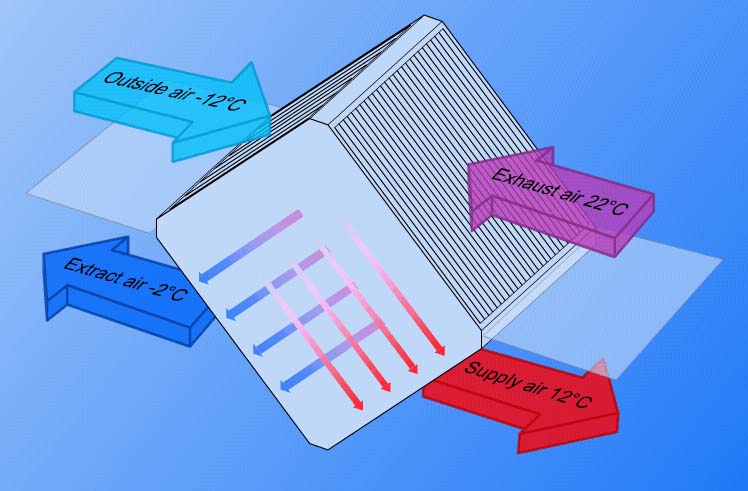 显热交换器和全热交换器,显热交换器由铝箔材料制成,温度传导率高、寿命长,适合于室内外温差大湿度差小的地区。全热交换器由专用纤维采用特殊工艺制成的纸张构成,这种材料具有透湿率高、气密性好、抗撕裂、耐老化的特点。全热交换器适合于室内外温度差小湿度差大的地区。