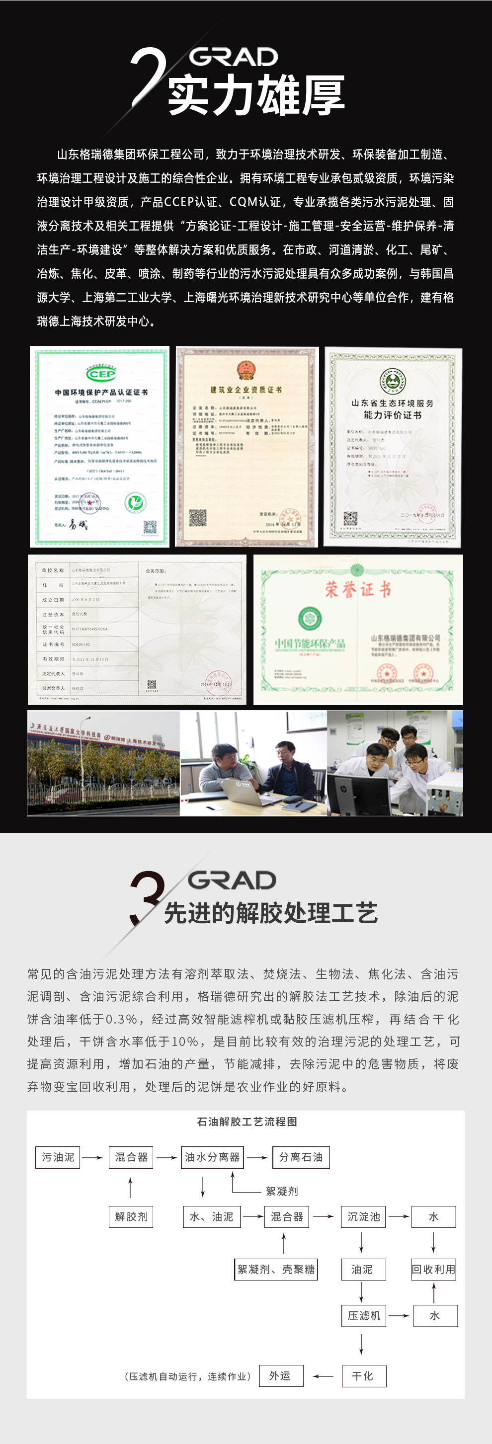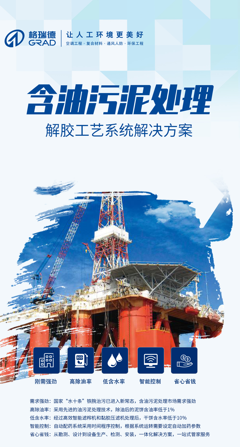 格瑞德集团致力于挥发性有机废气治理、固体废弃物安全处理处置、高浓度废水等净化处理工程,提供方案论证、工程设计、施工管理、安全运营、维护保养、清洁生产、环境建设等综合环保解决方案。